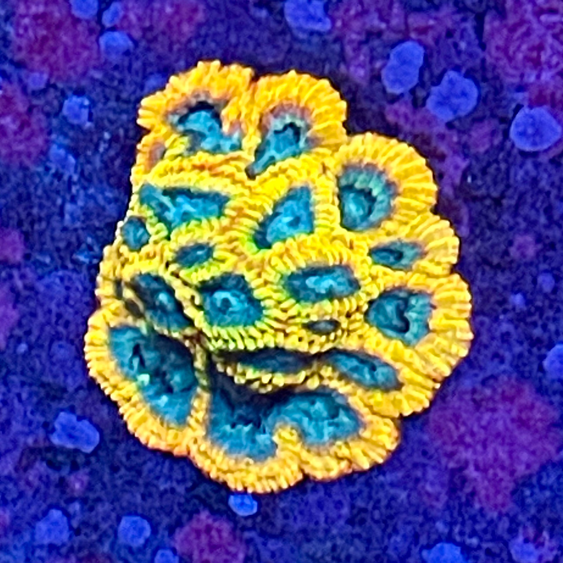 The Favia of the Gods is a breathtaking LPS (large-polyp stony) coral, prized for its intense neon colors that typically feature a deep red, orange, or purple base with bright green, yellow, or blue highlights around its polyp mouths. Known for its hardy nature and slow but steady growth, this Favia variety is a fantastic addition to reef tanks, providing a mesmerizing contrast to other corals.